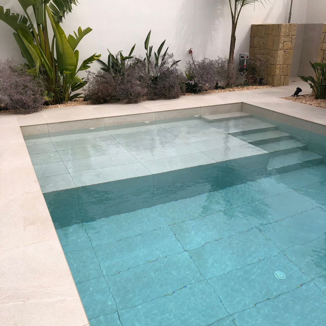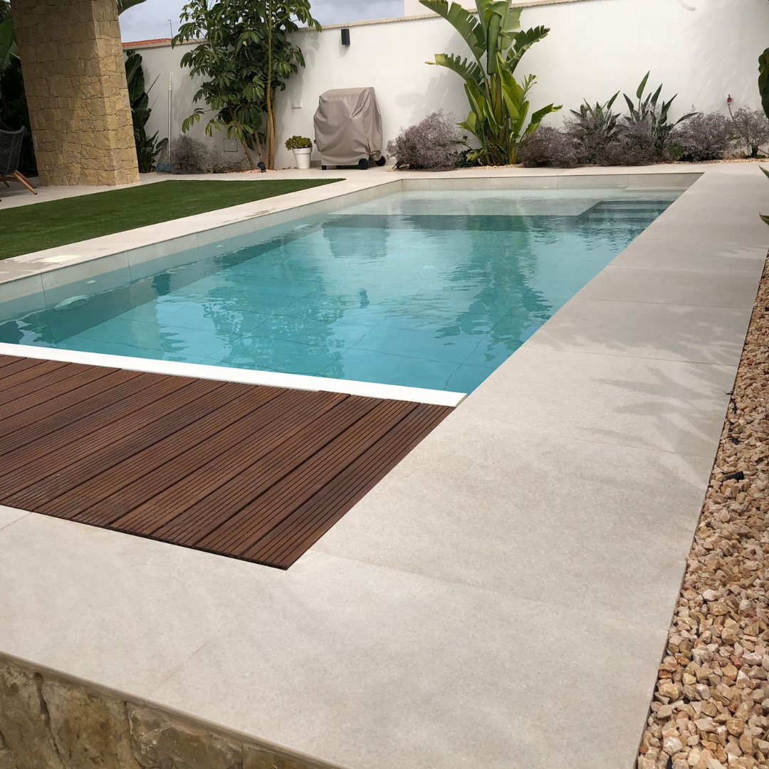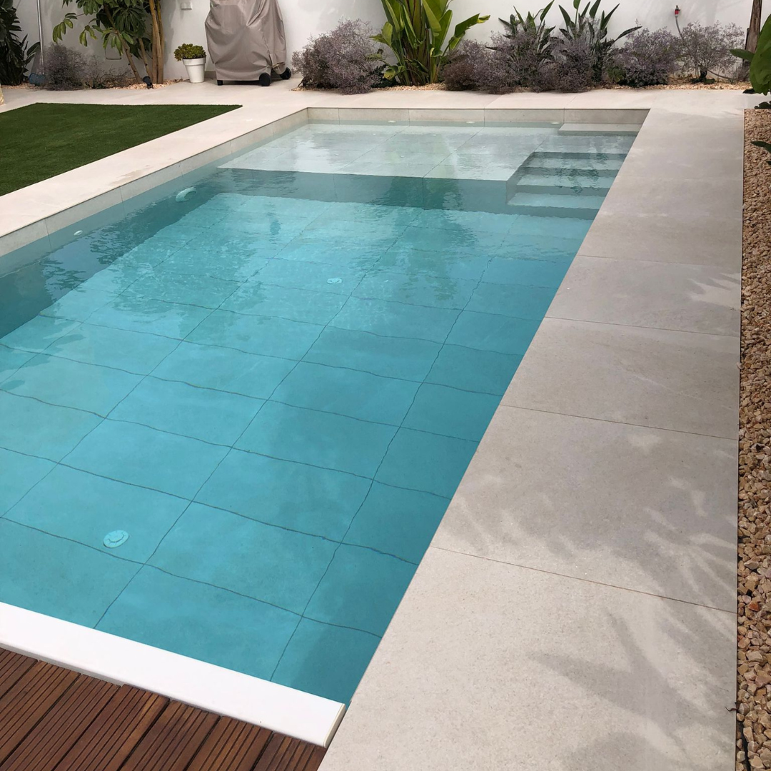 Hoy os presentamos una de nuestras últimas piscinas. En una espectacular casa de Camp de Turia suministramos Fidenza Pearl en formato 75×75. Se trata de cerámica porcelánica en tono gris que queda espectacular. Os dejamos las imágenes como inspiración. Si tu estás ahora mismo pensando en tú piscina y necesitas asesoramiento, no dudes en consultarnos ¡Somos expertos!