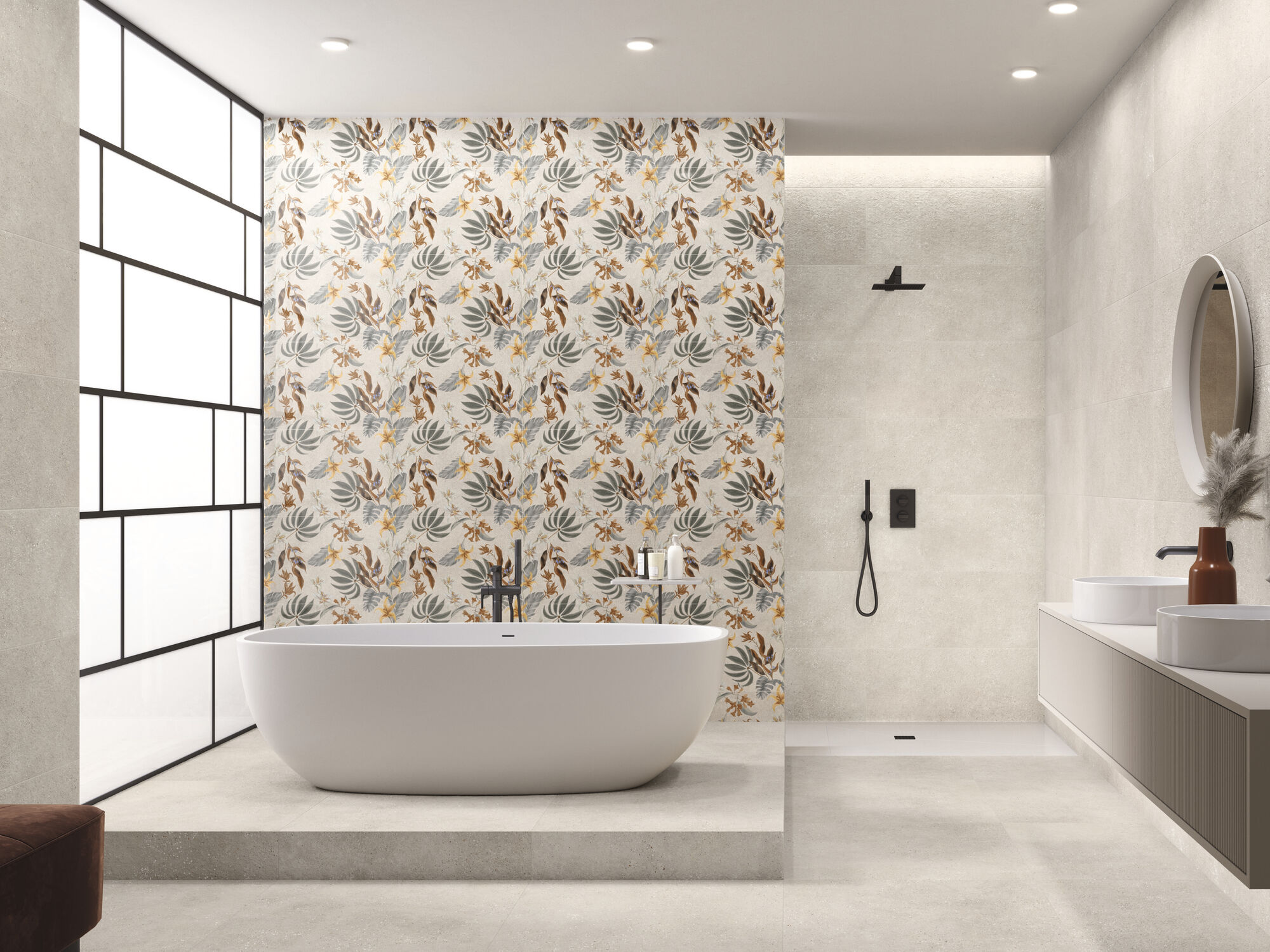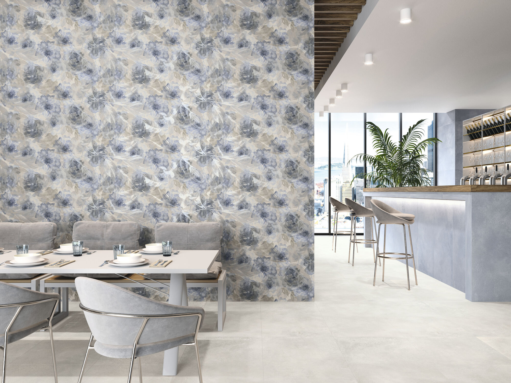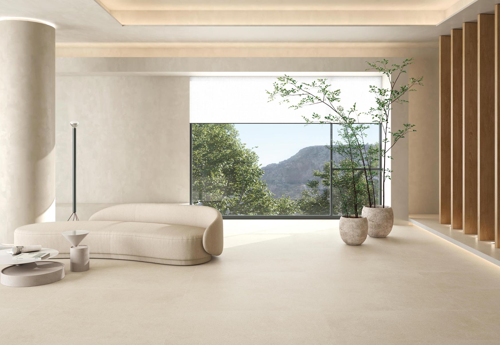 Los tonos neutros en cerámica porcelánica que simula el cemento es una de las tendencias que cogen fuerza en el próximo año. Pasamos de una época en la que la madera porcelánica era la más demandada y ahora notaremos un cambio hacia suelos cromáticos neutros que simulan o bien el cemento o la piedra de manera discreta.