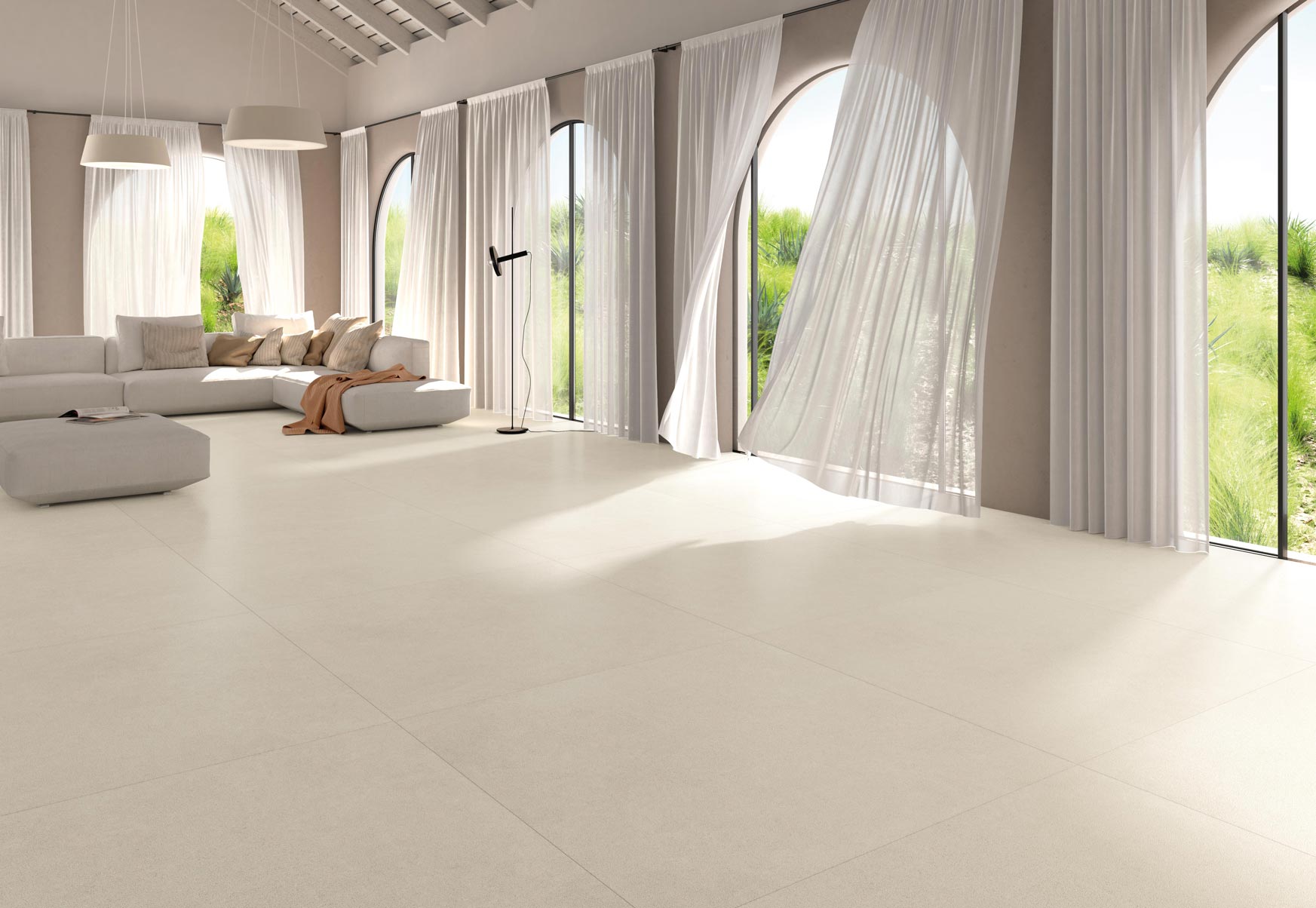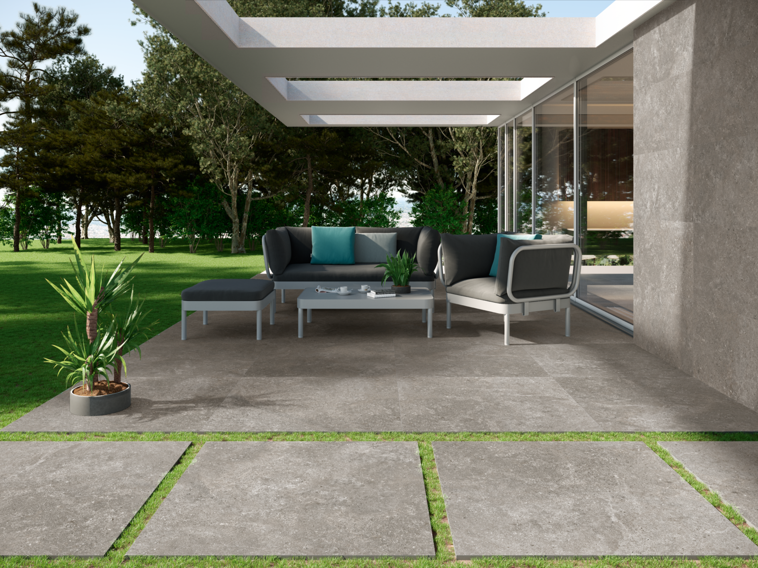 La cerámica espesorada cobra relevancia por sus características técnicas, que la hacen una elección segura para su colocación en exteriores. Su resistencia a impactos y a cambios de temperatura, su durabilidad y su acabado antideslizante lo convierten en la solución perfecta para jardines y terrazas, zonas industriales y entornos de agua como piscinas y zonas costeras.