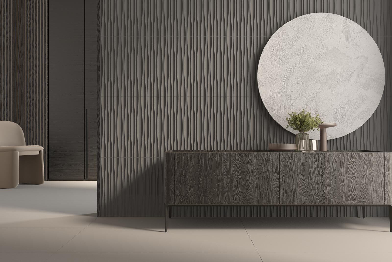 Inspirada en las fascinantes geometrías y superficies de los Flysch de Zumaia, esta serie presenta una notable erosión diferencial que crea un cautivador juego de alturas. Este efecto de alturas proyecta una vibración única dependiendo de la luz que recibe, generando una experiencia visual dinámica y cautivadora.